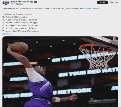 北京时间10月19日,NBA季前赛已经结束。常规赛将在10月22日开打,上午7点半,火箭vs雷霆;上午10点,勇士vs湖人(客场在前)。媒体NBA Retweet晒出季前赛表现最抢眼的新秀,状元弗拉格高居第一,榜眼哈珀无缘上榜: