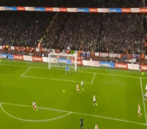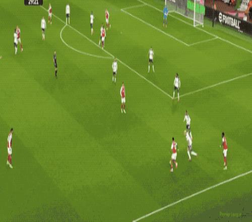 第76分钟,梅里诺送出妙传,特罗萨德无私横敲,埃泽停球摆脱一气呵成,随后兜射命中,大演帽子戏法,阿森纳锁定胜局,4-1!