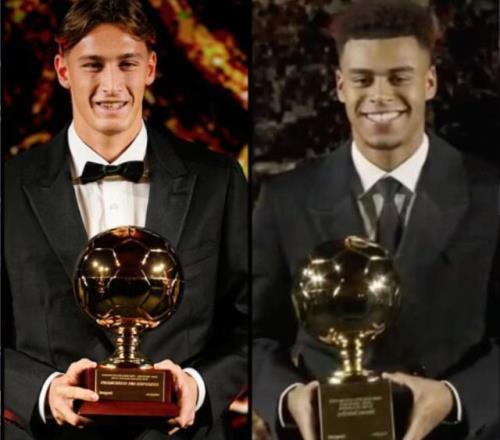 北京时间12月2日,2025金童奖颁奖典礼在都灵举行,巴黎圣日耳曼前锋杜埃荣获2025年金球奖,国际米兰前锋皮奥-埃斯波西托则获得意大利金童奖。
