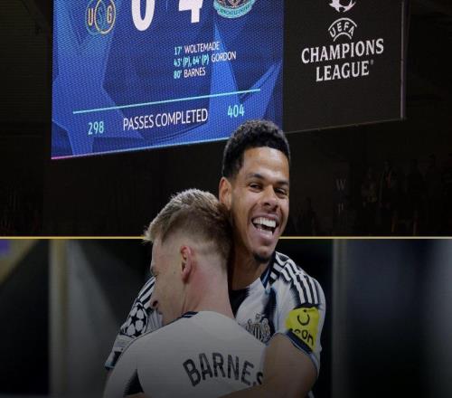欧冠首胜!纽卡40圣吉罗斯戈登点球双响沃尔特马德连场建功